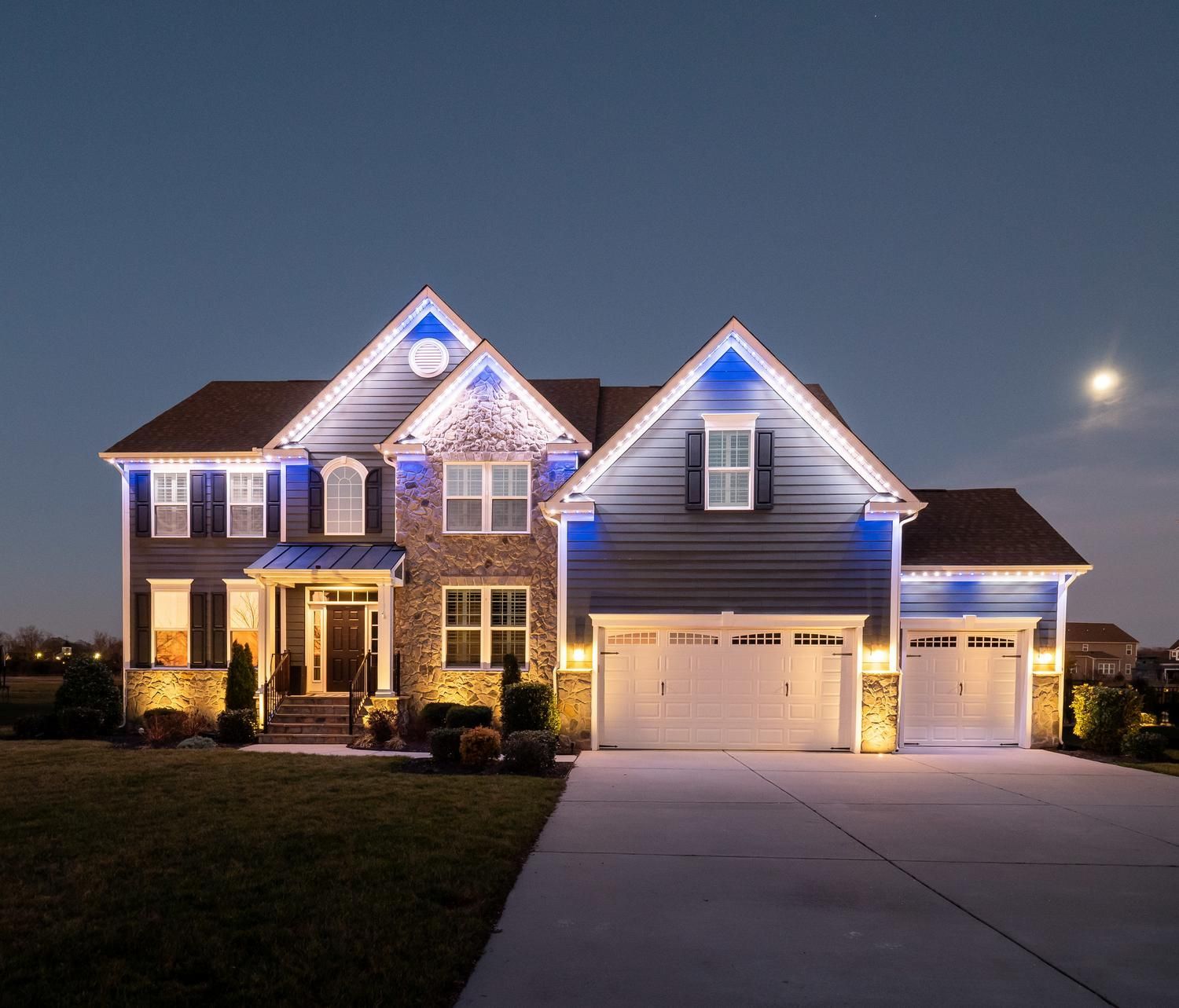 Why settle for ordinary outdoor lighting when you can customize your home’s glow all year long? Permanent color-changing roofline lighting allows you to adjust colors, patterns, and brightness with just a tap on your phone. Whether it’s a warm white glow for everyday elegance, festive red and green for the holidays, or your favorite team’s colors on game day, this system offers endless versatility with zero hassle.
